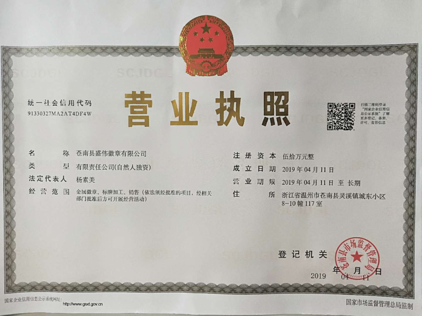 蒼南縣盛偉徽章有限公司成立于2019年,是一家專注于警徽產(chǎn)品設(shè)計、、銷售和產(chǎn)品維護的徽章廠家。多年來,我們一直嚴(yán)格要求自己,以優(yōu)良產(chǎn)品和誠信為本的理念經(jīng)營,不斷推動企業(yè)的發(fā)展壯大。我們注重人才培養(yǎng),不斷引進先進的經(jīng)營理念和管理模式,以滿足企業(yè)長期發(fā)展和擴大的需求。